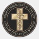 Illustration of a bronze serpent in a pole with a cross background. Custom background color. Two custom text fields on circle.