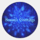 Una temática invernal con un enjambre de copos de nieve fractales azules. El texto que dice "Saludos de temporada" aparece en azul y blanco resplandeciente.