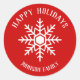 Esta etiqueta de pegatina redondo con copo de nieve tiene un fondo rojo con un diseño simple copo de nieve en el centro con el saludo de Felices Fiestas en la parte superior y el nombre de la familia debajo. Personaliza esto con tu propio saludo de Navidades y apellido. O personalizar este pegatina más con cambiar el color de fondo a cualquier color que desee. Estos pegatinas son excelentes para Navidades de sobres de tarjetas o regalos de intercambio de galletas.