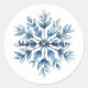 Pegatina Redonda Snowflake Blue White Winter