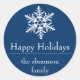 Pegatina Redonda Snowflake Felices Fiestas Pegatinas (Azul oscuro)