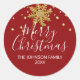 Pegatina Redonda Snowflake RED Gold Confetti Feliz Navidad