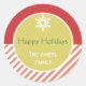 Pegatina Redonda Snowflake y Stripe | Pegatinas de vacaciones rojas