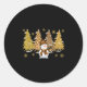 Pegatina Redonda Snowman Christmas Trees In Gold Merry Christmas Pa