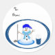 Un pequeño muñeco de nieve listo con su club de golf para ir al campo de golf.