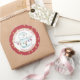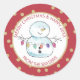 Pegatina de color rojo y dorado festivo "Feliz Navidad y Feliz 2018" con mi hombre de nieve con una suave acuarela sosteniendo una serie de coloridas luces navideñas. Personalice el texto como prefiera.