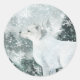 Pegatina Redonda Snowowowland Mountain Forest Arctic Fox