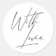 Estos modernos y sencillos sellos para sobres caligráficos son perfectos para un boda contemporáneo. Utilice la herramienta de diseño para cambiar el texto "Con amor" a cualquier color que desee para que coincida con su tema boda.