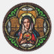 Pegatina Redonda Sobre cardíaco Virgen de Vidrio Manchado