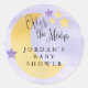 Este diseño de bonito presenta una luna y estrellas con un fondo de acuarela y su personalización. Usar como pegatina o sello para sobres de favores.