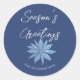Pegatina Redonda Sobre mínimo Poinsettia Blue Merry Christmas