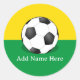 A soccer ball on yellow and green background. Custom stickers. Edit name to customize.