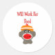 Pegatina Redonda Sock monkey TRABAJARÁ PARA regalos de comida