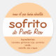 Sofrito (un condimento hecho en Puerto Rico que se usa para todo, desde sopas hasta arroz) pegatina en melocotón claro y naranja con una plantilla que se puede personalizar para incluir tu nombre, marca, lema, ingredientes, etc. También se puede usar en inglés como una panadería hecha por o por un pegatina para todas sus necesidades.