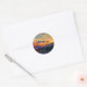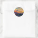Un diseño artístico de una hermosa puesta de sol también muestra rocas, playa y un hombre pescando.