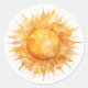 Un pegatina blanco con un sol acuático amarillo y naranja vibrante. Añade algo de sol a tus sobres y regala favores con este pegatina enérgico.