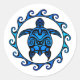 Pegatina Redonda Sol azul de tortuga tribal