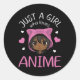 Pegatina Redonda Solamente un chica que ama a los Chicas anime afro