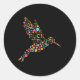 Pegatina Redonda Sólida Hummingbird floral antiTrump mensaje oculto