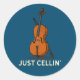 Cuto diseño de cello que dice "Just Cellin". Pegatina personalizado para un violín