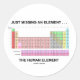 Muestra tu irónico sentido del humor químico con este pegatina de la Tabla Periódica de Elementos! incluye el gracioso dicho "Sólo falta un elemento ... El elemento humano". ¡Diversión educativa que hará que otros hagan una doble toma la próxima vez que vean la mesa periódica!