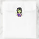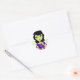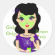 Un pegatina divertido con un chica de pelo oscuro con una máscara verde para la cara. Lo único para un fiesta de mimos chicas, un fiesta flojo o un evento similar de chicas. No dudes en añadir tu propio texto sin cargo adicional.