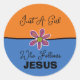 Pegatina Redonda Sólo un Chica que sigue a Jesús Naranja Azul