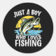 Pegatina Redonda Solo un chico que ama la pesca de la delicia del p
