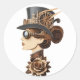 Sombrero Steampunk rostro de mujer arte moderno Pegatina redonda clásica