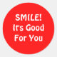 Pegatina Redonda ¡SONRÍE! Es bueno para ti. Roja.