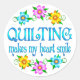 Una hermosa manera de mostrar cómo el tejido trae felicidad a tu vida. Estas flores coloridas y las palabras - Quilting hace que mi corazón sonría, seguro que expresará tu amor.