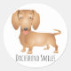 Pegatina Redonda Sonrisas de perro picante de Dachshund, hola, pens