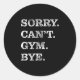 Pegatina Redonda Sorry Can't Gym Bye - Weightlifting Muscles Workou