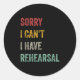 Pegatina Redonda Sorry I Can't I Have Rehearsal