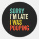 Pegatina Redonda Sorry I'm Late I Was Ong Funny Toilet Joke