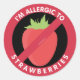 Soy alérgico a los Pegatinas del símbolo de alergia alimentaria de fresas. Círculo rojo con una línea que atraviesa el cruce de una fresa. El texto dice "Soy alérgico a las fresas". Mira todos nuestros otros productos de alergia. Contacto para solicitudes especiales. www.LilAllergyAdvocates.com