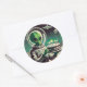 Pegatina Redonda Space Alien with Birthday Cake UFO Flying Saucer