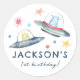 Pegatina Redonda Space Aliens Planets & Start Primer Fiesta de cump