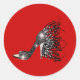 Pegatina Redonda Sparkling Black Stiletto on Red