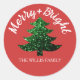 Pegatina Redonda Sparkly Merry brillante árbol de Navidad Nombre pe