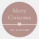 Termina tus envíos de navidad y regalos con estos dulces y simples stickers de Navidad, personalizable con tu saludo de vacaciones preferido y la firma familiar (mostrado con "Feliz Navidad") en un suave fondo de terracota de tono de tierra. Un pequeño arco que recorre el centro completa este elegante diseño minimalista de vacaciones.
