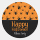 Pegatina Redonda Spiders Happy Halloween Black Naranja Personalizad