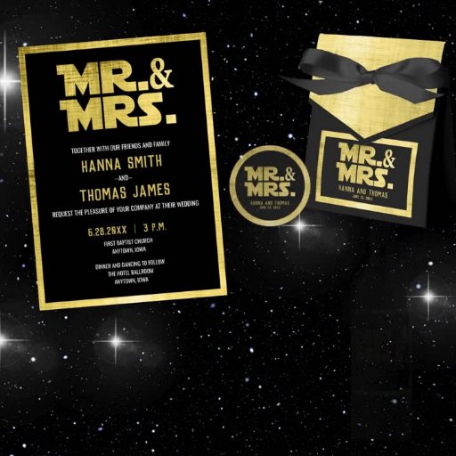 Presentamos nuestro Pegatina Boda Temático de Ciencia Ficción, una mezcla perfecta de elegancia cósmica y encanto futurista para su día especial. Este exquisito pegatina redondo presenta un espacio fascinante con un fondo negro de galaxia, adornado con un aspecto dorado cepillado que crea un impresionante contraste. La negrita "MR. El texto & MRS" ocupa el centro del escenario, diseñado con un tipo de letra elegante y moderno que exuda sofisticación y un toque de encanto de la ciencia ficción. Personalice este pegatina único con sus nombres y fecha de boda, que se muestra elegantemente bajo el texto principal en el mismo lujoso acabado dorado. La combinación del negro profundo, estrellado y el oro radiante evoca la belleza infinita del cosmos, lo que lo convierte en una elección ideal para las parejas que comparten el amor por las maravillas del universo. Estos pegatinas no sólo son una adición elegante a la decoración boda, sino también un recuerdo memorable para sus huéspedes. Perfecto para sellar invitaciones, decorar cajas de favores o mejorar tu álbum de bodas, añaden un toque de glamour personalizado a cualquier superficie. Celebra tu viaje a las estrellas con este cautivador Pegatina de Boda Temático de Ciencia Ficción, diseñado para hacer que tu día especial salga verdaderamente de este mundo.