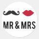 Pegatina Redonda sr. y sra. con bigote y labios rojos