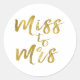 Miss a la Sra. Bridal Shower Relieve metalizado dorado Script y Pegatinas de Beber de fondo blanco para una ducha de novia moderna y elegante o una fiesta de soltera.