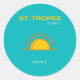 Pegatina Redonda St Tropez, Sunset, Arte de Viajes, Turquesa