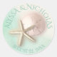 Bodas en la playa inspiradas en acuarelas favorecen al pegatina con nombres de novios y bodas. Acuática acuática acuática acuática acuática con estofado y dólar de arena.