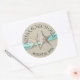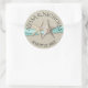 La boda rústica en la playa favorece al pegatina con los nombres de la novia y del novio y la fecha del boda. Cinta de Aqua y diseño de burlap con estepa.