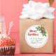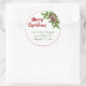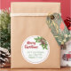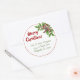 Feliz regreso navideño a etiquetas redondas con estepa y diseño holly. Los pegatinas de vacaciones tropicales pueden ser usados como sellos para sobres y tener plantillas de texto rojas y verdes. Personalizar con tu elección de saludo de vacaciones y nombre / nombres de impresión y dirección debajo de un pegatina blanco. Una estrella marrón del mar y un hueco verde decoran el borde superior con un delgado círculo rojo que lo enmarca todo. Los pegatinas redondos vienen en dos tamaños.