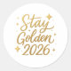 Pegatina Redonda Stay Golden 2026 – Shiny Motivational Sticker